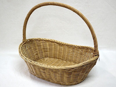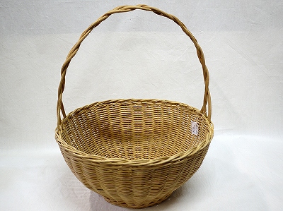 ![]() 籐 上部菊編み1本手 34×26×H22(HH32) 標準価格 提供価格 ¥3,300 問合せ番号:a413 |