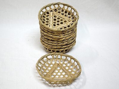 ![]() 白竹 六つ目編 小皿 丸 Φ15×H5 標準価格 提供価格 ¥120 問合せ番号:d171 |